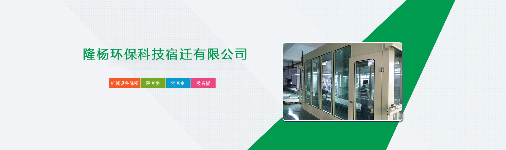 隆楊環??萍妓捱w有限公司是一家專業從事機械設備降噪,隔音房,消聲室,等產品開發與施工的企業。公司在噪聲與振動控制領域具有承接綜合性噪聲治理工程的雄厚實力??勺原h評分析、工程設計、產品制作、安裝施工、售后服務等等諸多環節提供交鑰匙總承包服務。我們本著用戶至上,質量為本的原則,不斷探索新方法,總結新經驗,產品質量取得用戶的一致好評。